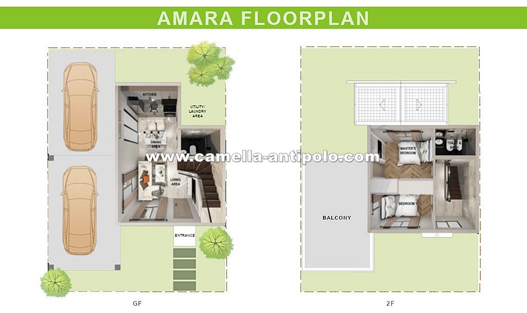 Amara has a lot area of 88 and a house area of 52 sqm (or 72 sqm with balcony option). It's a single attached 2-storey house with two bedrooms, two toilets and baths, a living area, dining area, kitchen, a carport, provision for a balcony, and a laundry and service area. The grand master's bedroom is located at the second floor with exclusive toilet and bathroom. If you want the biggest space and all the extra rooms that you can have, Amara model is for you!